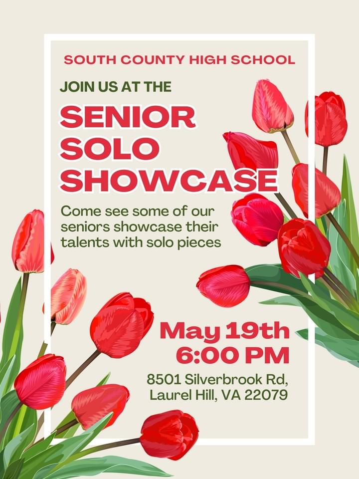 19 - SPRING CONCERT & AWARDS, 6:00pm (Senior Solo Showcase); 7:30pm (Spring Concert & Awards)